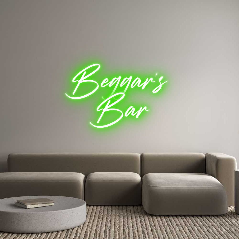 Text: Beggar's Bar Text Align: centerFont: StrudeColour: GreenSize: 60cm wide / 60cm X 46.27cm / 23.62in X 18.22inBackboard: Cut to Letter (free upgrade)Jacket: Coloured JacketMounting: HangingAdd a Heart or Star (Optional): None (Default)Neon Tube Thickness: Bold Tube (8mm) (free ...