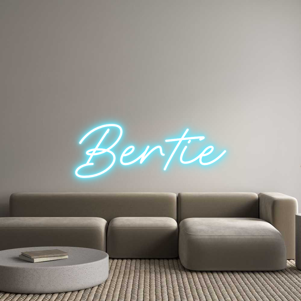Text: Bertie Text Align: LeftFont: RocketColor: Ice BlueSize: 80cm wide / 80cm X 29.18cm / 31.5in X 11.49inMaterial: IndoorBackboard: Cut to Letter (free upgrade)Jacket: Coloured JacketMounting: Fast mount kitAdd a Heart or Star (Optional): None (Default)Neon Tube Thickness: Bold Tube (8mm)...