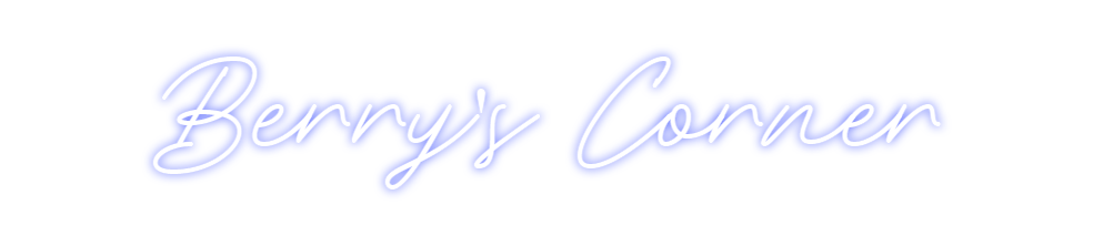 Text: Berry's Corner Text Align: left Font: RocketColour: BlueSize: 80cm wide / 80cm X 13.2cm / 31.5in X 5.2inBackboard: Cut to Letter (free upgrade)Jacket: Coloured JacketMounting: Wall mounting screwsNeon Tube Thickness: Bold Tube (8mm) (free upgrade)Remote Dimmer: NoPower Mo...