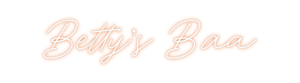 Text: Betty’s Baa Text Align: left Font: RocketColour: OrangeSize: 60cm wide / 60cm X 12.99cm / 23.62in X 5.11inBackboard: Cut to ShapeBackboard Colour: Clear Acrylic BackboardJacket: Coloured JacketMounting: HangingAdd a Heart or Star (Optional): None (Default)Neon Tube Thickn...