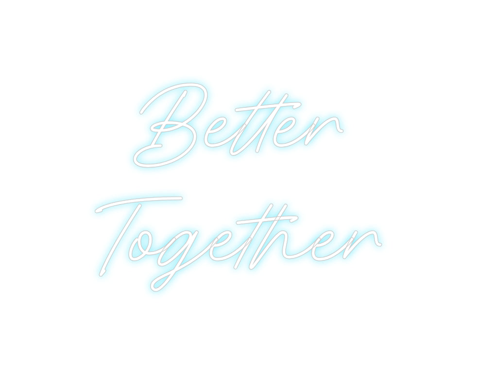 Text: Better Together Text Align: leftFont: CrystalColour: BlueSize: 120cm wide / 120cm X 64.02cm / 47.24in X 25.2inBackboard: Cut to Letter (free upgrade)Jacket: Coloured JacketMounting: Wall mounting screwsAdd a Heart or Star (Optional): None (Default)Neon Tube Thickness: Bold Tube...