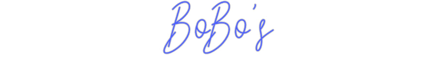 Text: BoBo's Text Align: leftFont: HestericaColour: BlueSize: 60cm wide / 60cm X 27cm / 23.62in X 10.63inBackboard: Cut to ShapeBackboard Colour: Clear Acrylic BackboardJacket: Coloured JacketMounting: HangingAdd a Heart or Star (Optional): None (Default)Neon Tube Thickness: Bold Tub...