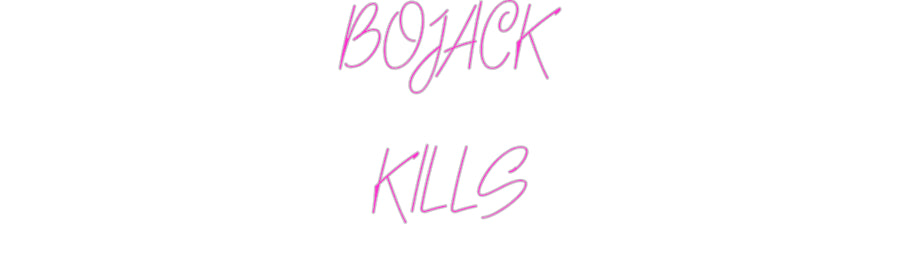 Text: BOJACK KILLS Text Align: centerFont: LinoleoColour: PinkSize: 40cm wide / 40cm X 33.53cm / 15.75in X 13.2inBackboard: Cut to Letter (free upgrade)Jacket: Coloured JacketMounting: Wall mounting screwsAdd a Heart or Star (Optional): None (Default)Neon Tube Thickness: Bold Tube (...