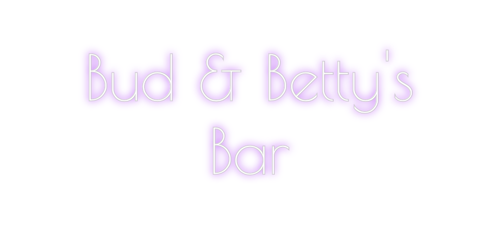 Text: Bud & Betty's Bar Text Align: center Font: PoiretColour: PurpleSize: 100cm wide / 100cm X 39.04cm / 39.37in X 15.37inBackboard: Cut to Letter (free upgrade)Jacket: Coloured JacketMounting: Wall mounting screwsAdd a Heart or Star (Optional): None (Default)Neon Tube Thi...