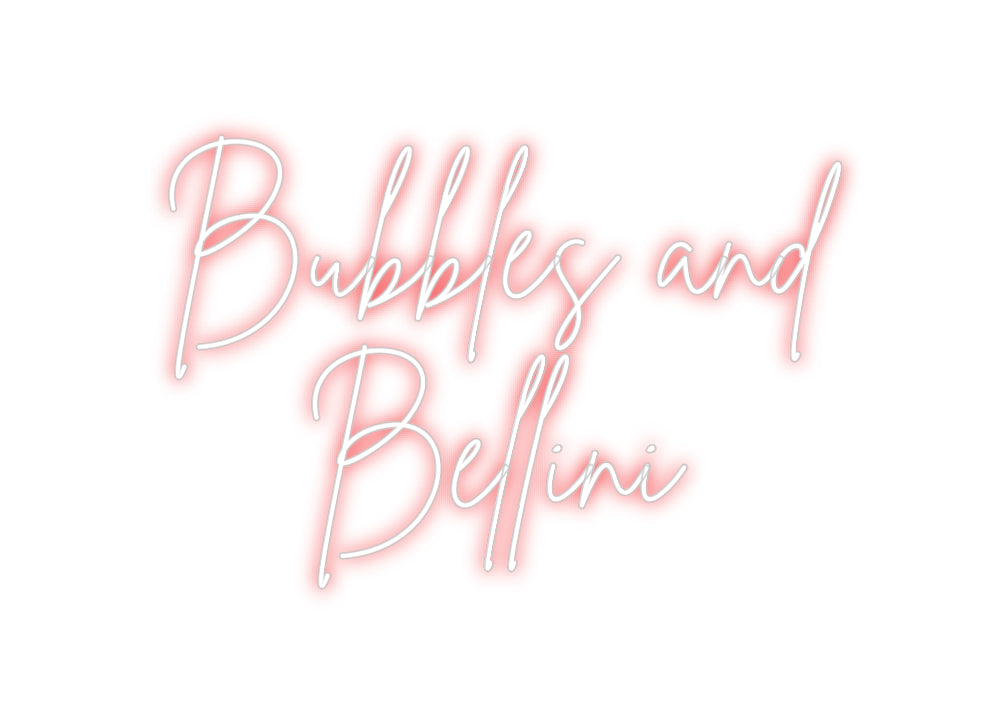Text: Bubbles and Bellini Text Align: center Font: BrittanyColour: Colour Changing Neon sign/ RGB +85% price increase. Lights can be controlled through remoteSize: 100cm wide / 100cm X 67.48cm / 39.37in X 26.57inBackboard: Cut to Letter (free upgrade)Jacket: Coloured JacketMou...