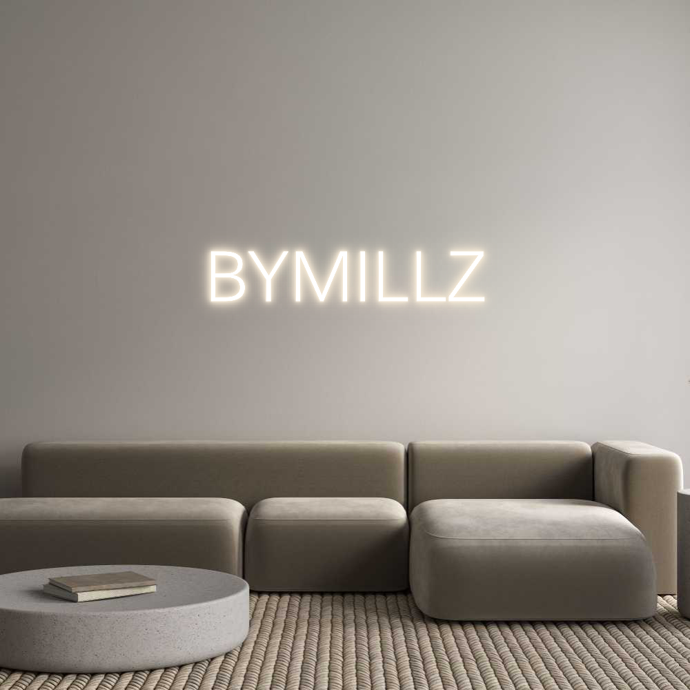 Text: BYMILLZ Text Align: LeftFont: ZurichColor: Warm WhiteSize: 60cm wide / 60cm X 11.04cm / 23.62in X 4.35inBackboard: Cut to ShapeBackboard Color: Clear Acrylic BackboardJacket: Coloured JacketMounting: Wall mounting screwsAdd a Heart or Star (Optional): None (Default)Neon Tube Th...
