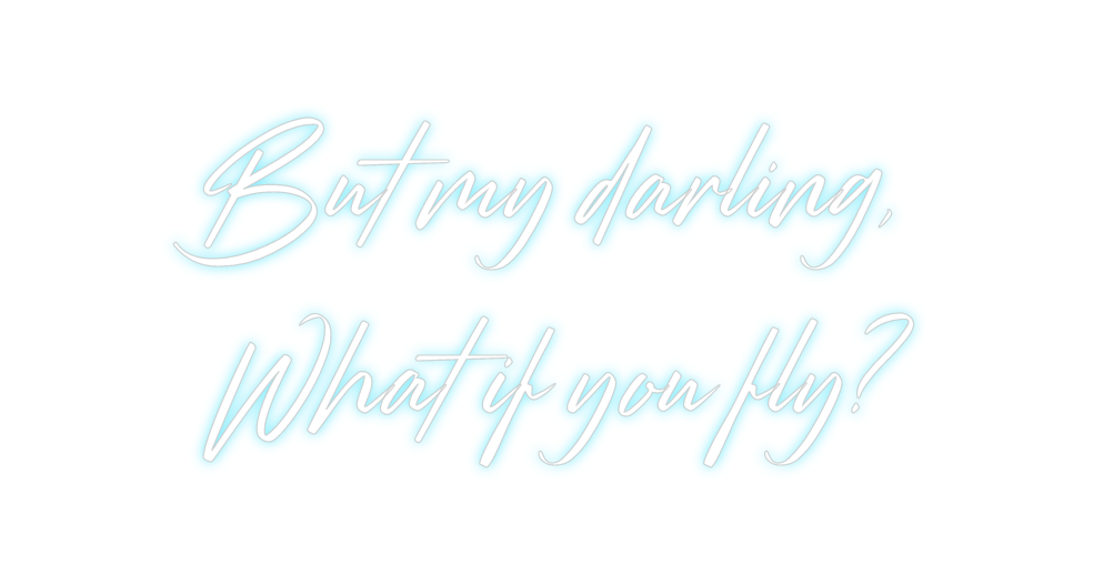 Text: But my darling, What if you fly? Text Align: center Font: StrudeColour: Ice BlueSize: 80cm wide / 80cm X 37.97cm / 31.5in X 14.95inBackboard: Cut to ShapeBackboard Colour: Clear Acrylic BackboardJacket: Coloured JacketMounting: Wall mounting screwsAdd a Heart or Star (Opt...