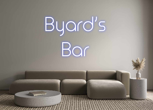 Text: Byard’s Bar Text Align: center Font: Time Colour: BlueSize: 60cm wide / 60cm X 40.29cm / 23.62in X 15.86inBackboard: Whole Board (free upgrade)Backboard Colour: Clear Acrylic BackboardJacket: Coloured JacketMounting: Wall mounting screwsNeon Tube Thickness: Bold Tub...