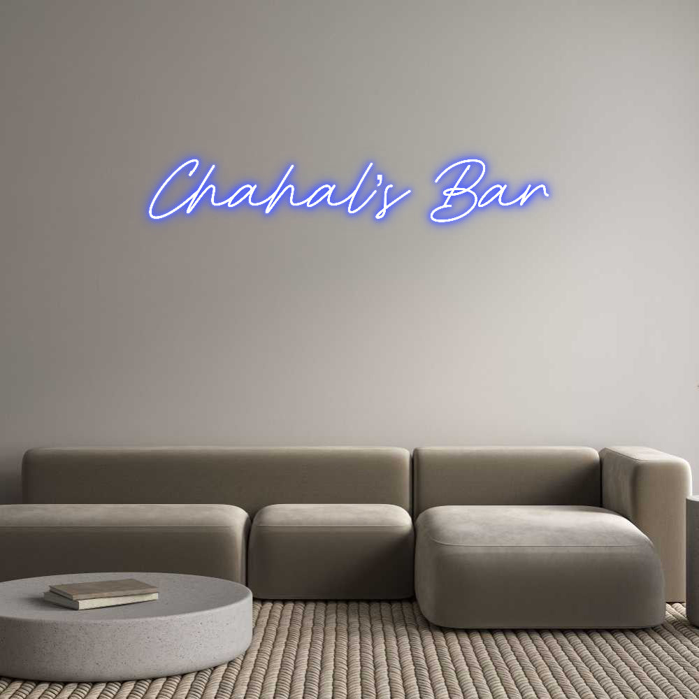 Text: Chahal’s Bar Text Align: left Font: RocketColour: BlueSize: 80cm wide / 80cm X 12.95cm / 31.5in X 5.1inBackboard: Cut to Letter (free upgrade)Jacket: Coloured JacketMounting: Wall mounting screwsAdd a Heart or Star (Optional): None (Default)Neon Tube Thickness: Classic Tu...