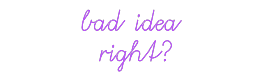 Text: bad idea right? Text Align: centerFont: GruenewaldColour: PurpleSize: 60cm wide / 60cm X 44.22cm / 23.62in X 17.41inBackboard: Cut to ShapeBackboard Colour: Clear Acrylic BackboardJacket: Coloured JacketMounting: Wall mounting screwsAdd a Heart or Star (Optional): None (Defau...