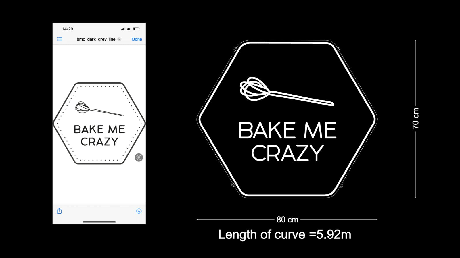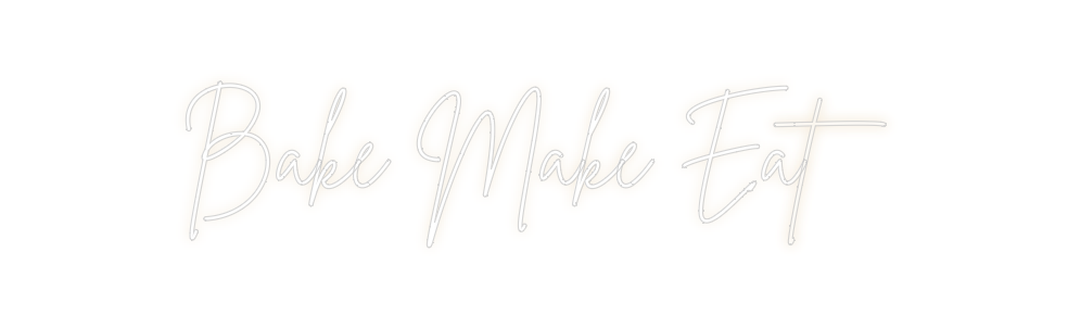 Text: Bake Make Eat Text Align: left Font: Brittany Colour: Warm WhiteSize: 100cm wide / 100cm X 24.67cm / 39.37in X 9.71inBackboard: Cut to ShapeBackboard Colour: Clear Acrylic BackboardJacket: White JacketMounting: Wall mounting screwsNeon Tube Thickness: Classic Tube (...