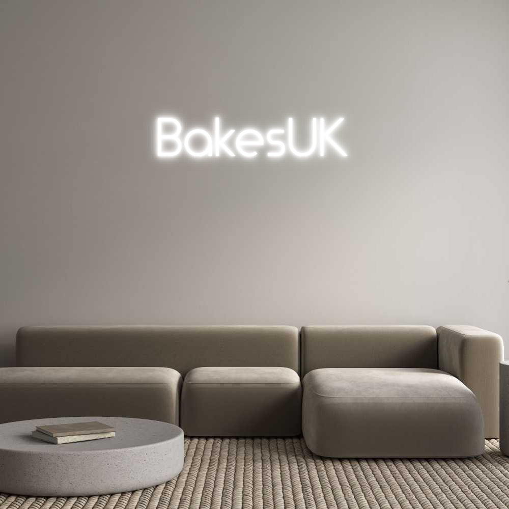Text: BakesUK Text Align: center Font: TimeColour: Colour Changing Neon sign/ RGB +85% price increase. Lights can be controlled through remoteSize: 60cm wide / 60cm X 12.68cm / 23.62in X 4.99inBackboard: Cut to ShapeBackboard Colour: Clear Acrylic BackboardJacket: White JacketM...