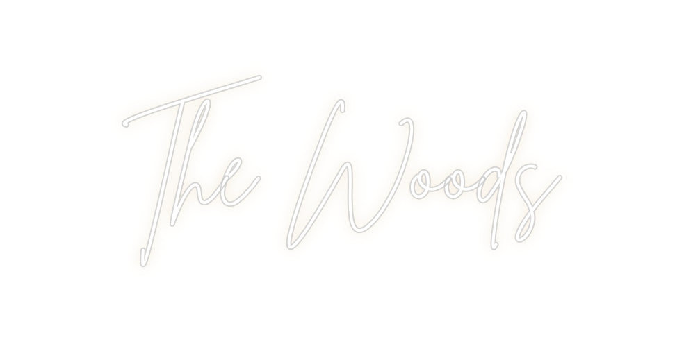 Text: The Woods Text Align: left Font: BrittanyColour: Warm WhiteSize: 60cm wide / 60cm X 26.43cm / 23.62in X 10.4inBackboard: Cut to Letter (free upgrade)Jacket: White JacketMounting: HangingAdd a Heart or Star (Optional): None (Default)Neon Tube Thickness: Bold Tube (8mm) (fr...