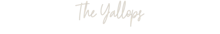 Text: The Yallops Text Align: leftFont: HestericaColour: Warm WhiteSize: 100cm wide / 100cm X 36.64cm / 39.37in X 14.42inBackboard: Cut to Letter (free upgrade)Jacket: Coloured JacketMounting: HangingAdd a Heart or Star (Optional): None (Default)Neon Tube Thickness: Bold Tube (8mm) (...
