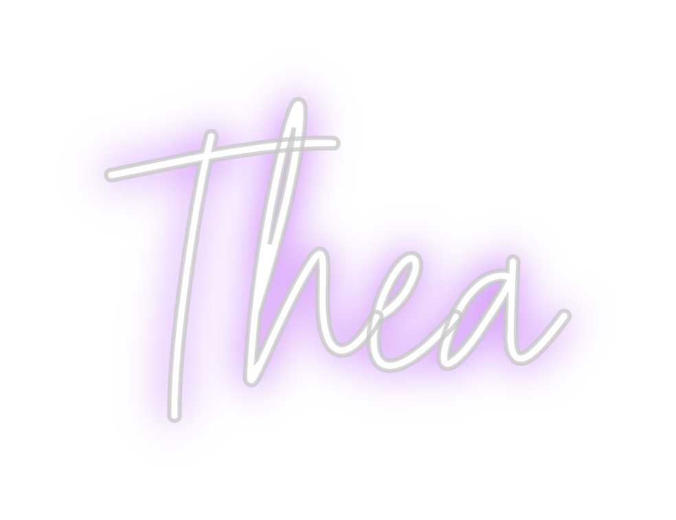 Text: Thea Text Align: left Font: HestericaColour: PurpleSize: 20cm wide / 20cm X 14.18cm / 7.87in X 5.58inBackboard: Cut to Letter (free upgrade)Jacket: Coloured JacketMounting: Wall mounting screwsNeon Tube Thickness: Bold Tube (8mm) (free upgrade)Remote Dimmer: NoPower Mode:...
