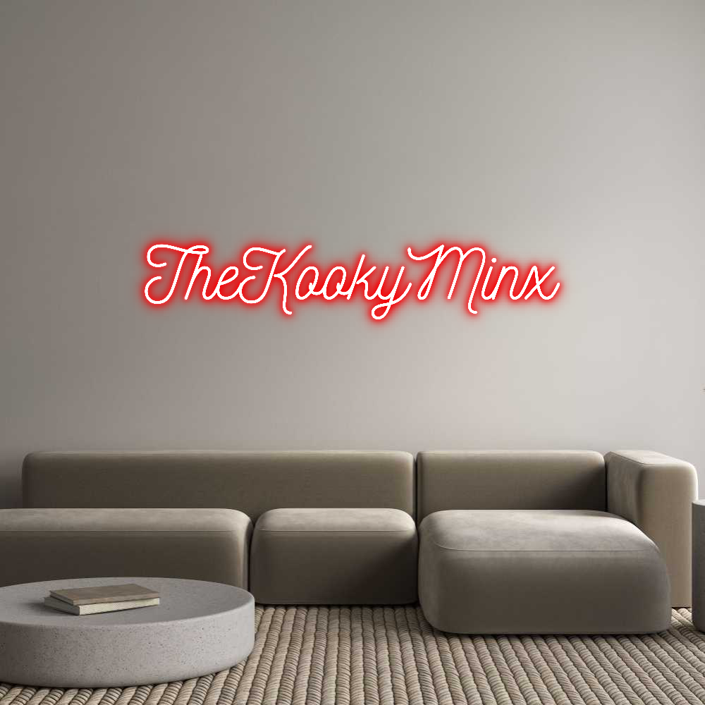 Text: TheKookyMinx Text Align: centerFont: NickainleyColour: RedSize: 80cm wide / 80cm X 14.83cm / 31.5in X 5.84inBackboard: Cut to Letter (free upgrade)Jacket: Coloured JacketMounting: Fast mount kitAdd a Heart or Star (Optional): None (Default)Neon Tube Thickness: Bold Tube (8mm) (...
