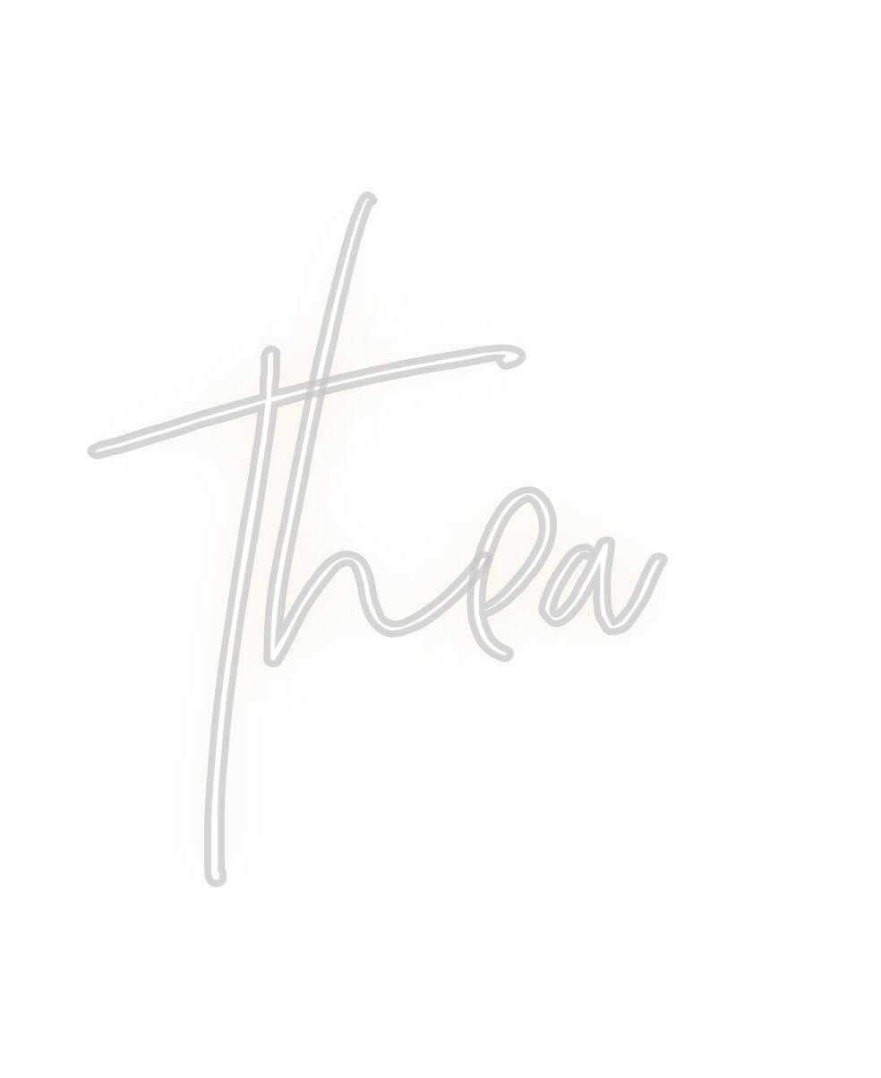 Text: Thea Text Align: center Font: CrystalColour: Warm WhiteSize: 40cm wide / 40cm X 46.51cm / 15.75in X 18.31inBackboard: Cut to Letter (free upgrade)Jacket: Coloured JacketMounting: Wall mounting screwsAdd a Heart or Star (Optional): None (Default)Neon Tube Thickness: Class...