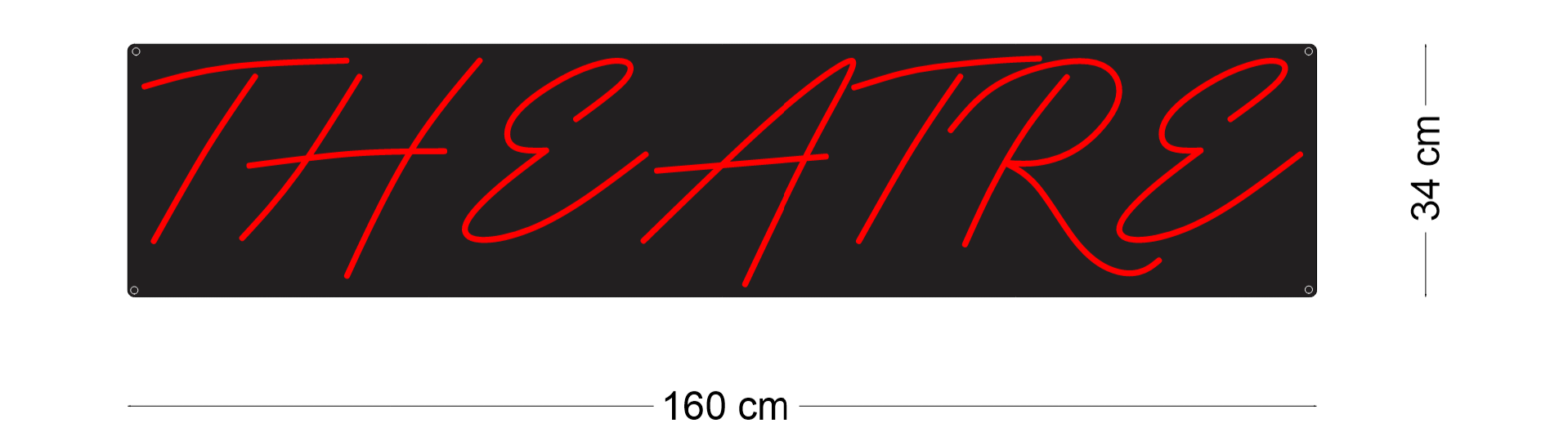 Text: THEATRE Text Align: left Font: WorldColour: RedSize: 160cm wide / 160cm X 34.03cm / 62.99in X 13.4inBackboard: Whole Board (free upgrade)Backboard Colour: BlackJacket: White JacketMounting: Wall mounting screwsAdd a Heart or Star (Optional): None (Default)Neon Tube Thickn...