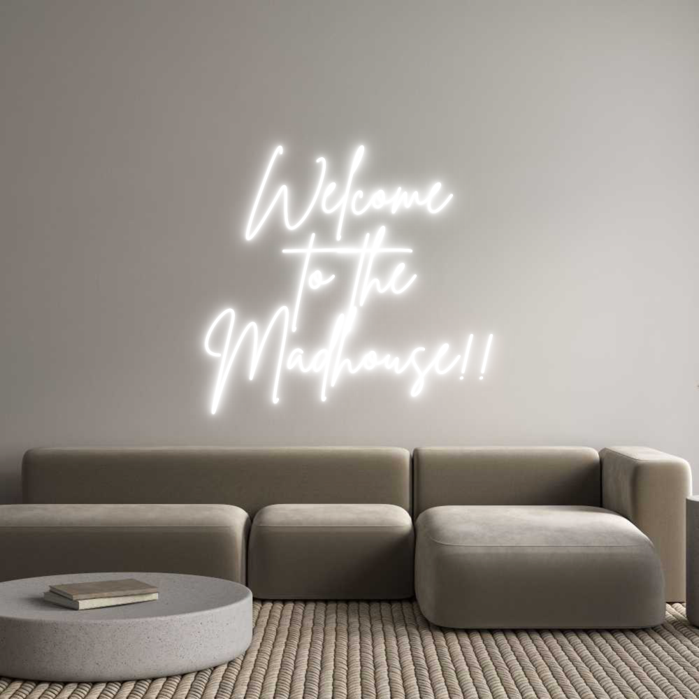 Text: Welcome to the Madhouse!! Text Align: centerFont: BrittanyColour: Colour Changing Neon sign/ RGB +85% price increase. Lights can be controlled through remoteSize: 60cm wide / 60cm X 60.04cm / 23.62in X 23.64inBackboard: Cut to Letter (free upgrade)Jacket: Coloured JacketMount...
