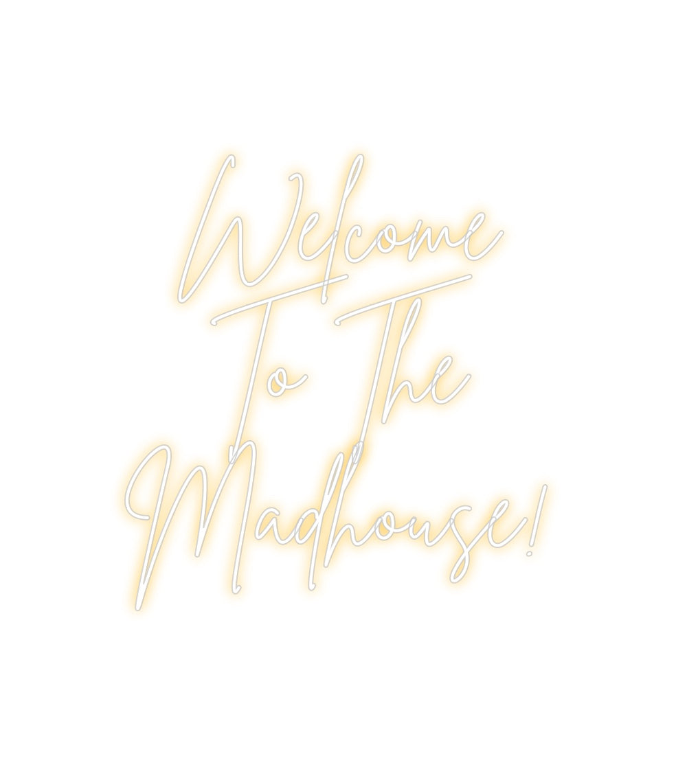Text: Welcome To The Madhouse! Text Align: center Font: BrittanyColour: Light OrangeSize: 80cm wide / 80cm X 85.77cm / 31.5in X 33.77inBackboard: Cut to Letter (free upgrade)Jacket: White JacketMounting: Wall mounting screwsAdd a Heart or Star (Optional): None (Default)Neon Tube ...