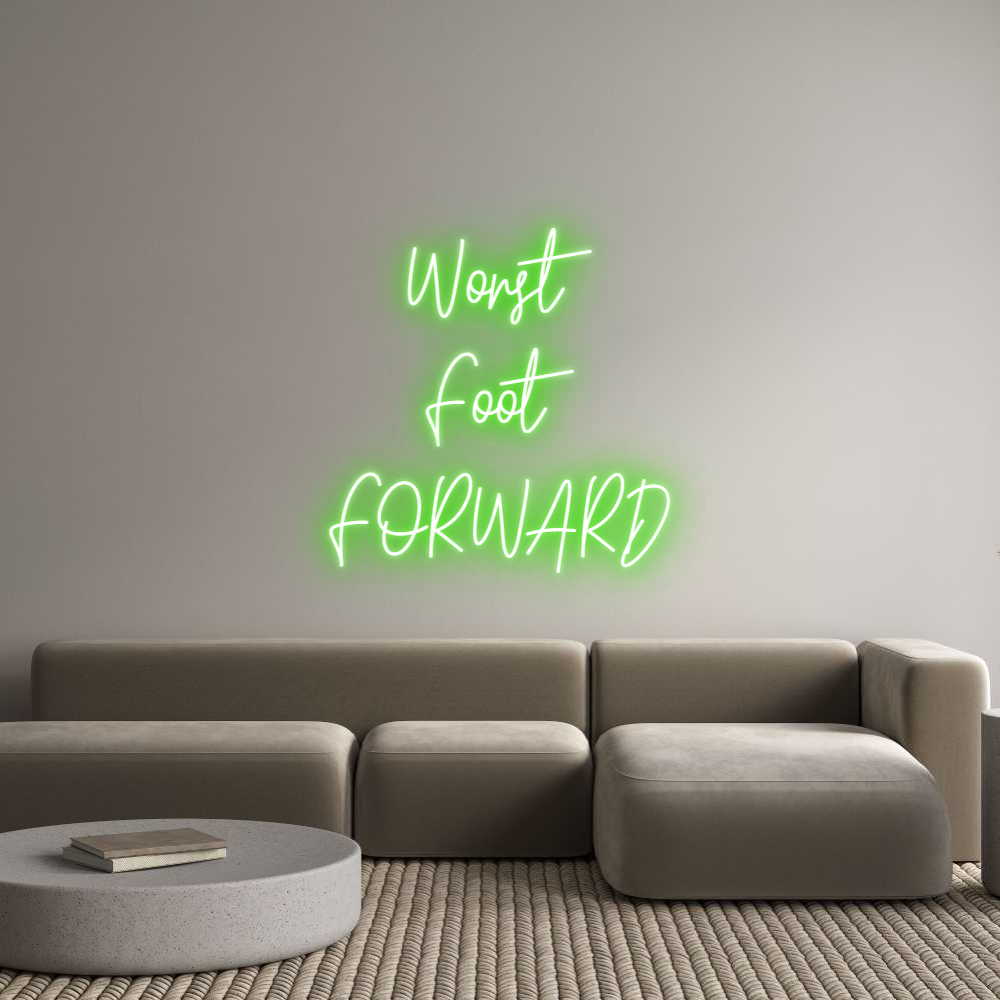 Text: Worst Foot FORWARD Text Align: CenterFont: HestericaColor: GreenSize: 60cm wide / 60cm X 53.37cm / 23.62in X 21.01inBackboard: Whole Board (free upgrade)Backboard Color: Silver MirrorJacket: Coloured JacketMounting: Wall mounting screwsAdd a Heart or Star (Optional): None (De...