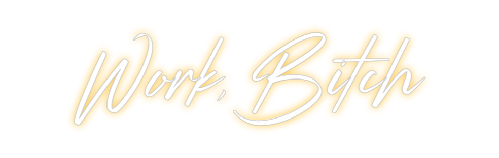 Text: Work, Bitch Text Align: right Font: StrudeColour: Light OrangeSize: 60cm wide / 60cm X 15.37cm / 23.62in X 6.05inBackboard: Cut to ShapeBackboard Colour: Clear Acrylic BackboardJacket: Coloured JacketMounting: Wall mounting screwsAdd a Heart or Star (Optional): None (Defa...
