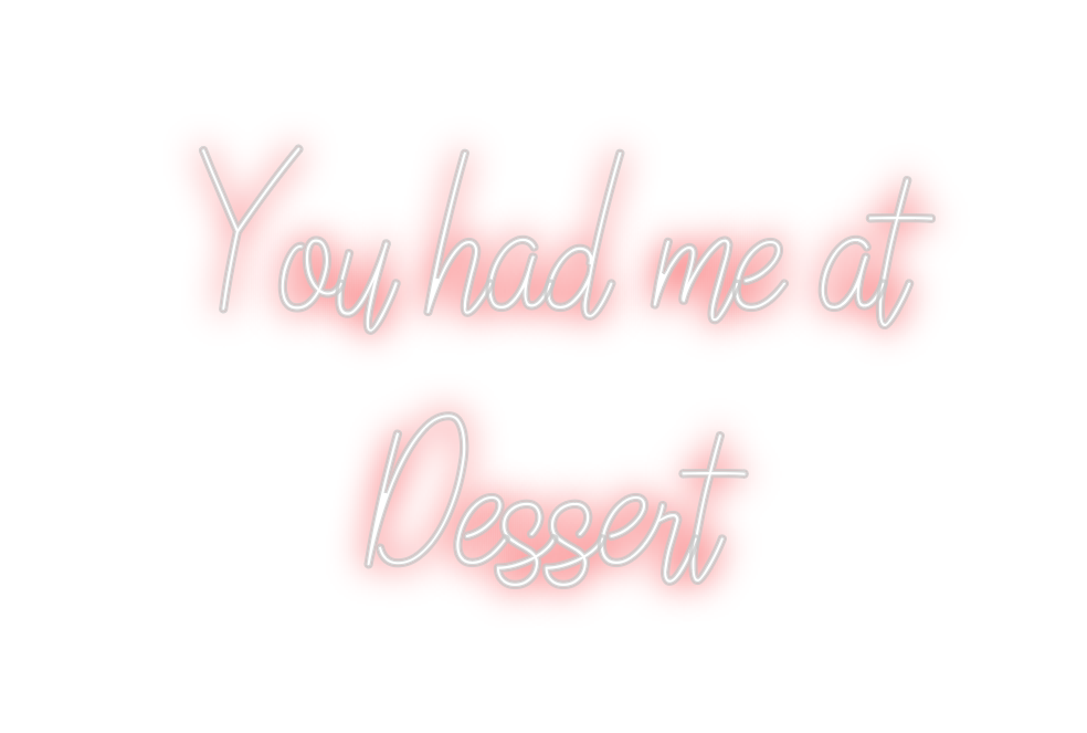 Text: You had me at Dessert Text Align: center Font: LinoleoColour: Colour Changing Neon sign/ RGB +85% price increase. Lights can be controlled through remoteSize: 120cm wide / 120cm X 73.54cm / 47.24in X 28.95inBackboard: Cut to Letter (free upgrade)Jacket: White JacketMounti...