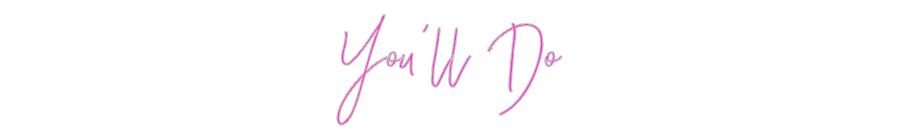 Text: You'll Do Text Align: centerFont: CrystalColour: PinkSize: 60cm wide / 60cm X 30.42cm / 23.62in X 11.98inBackboard: Cut to ShapeBackboard Colour: Clear Acrylic BackboardJacket: Coloured JacketMounting: HangingAdd a Heart or Star (Optional): None (Default)Neon Tube Thickness: Cl...