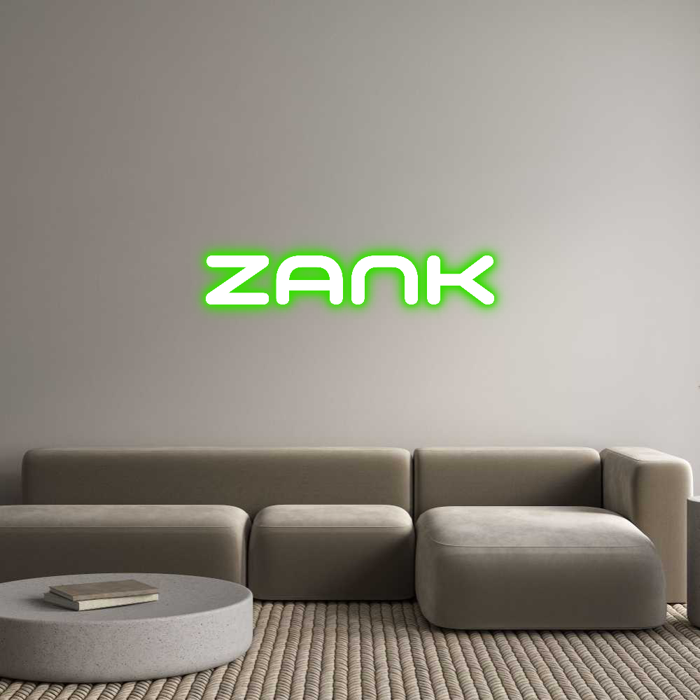 Text: ZANK Text Align: LeftFont: SpaceColor: GreenSize: 60cm wide / 60cm X 9.99cm / 23.62in X 3.93inBackboard: Cut to ShapeBackboard Color: Clear Acrylic BackboardJacket: Coloured JacketMounting: Wall mounting screwsAdd a Heart or Star (Optional): None (Default)Neon Tube Thickness: C...