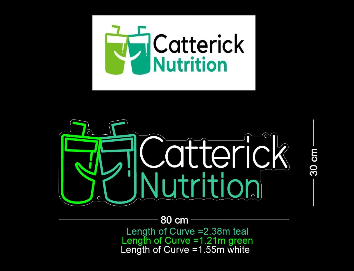Size: 80cm x 30cm Colour: Teal, green and cool white Backboard Shape: Cut to Shape Backboard Colour: Clear Acrylic