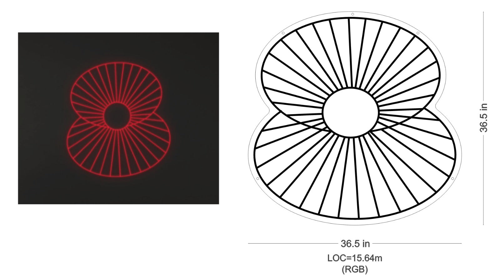 Size: 36.5 inches x 36.5 inches Colour: Standard Colour Changing Backboard Shape: Cut to Shape Backboard Colour: Clear Acrylic Hanging ✅