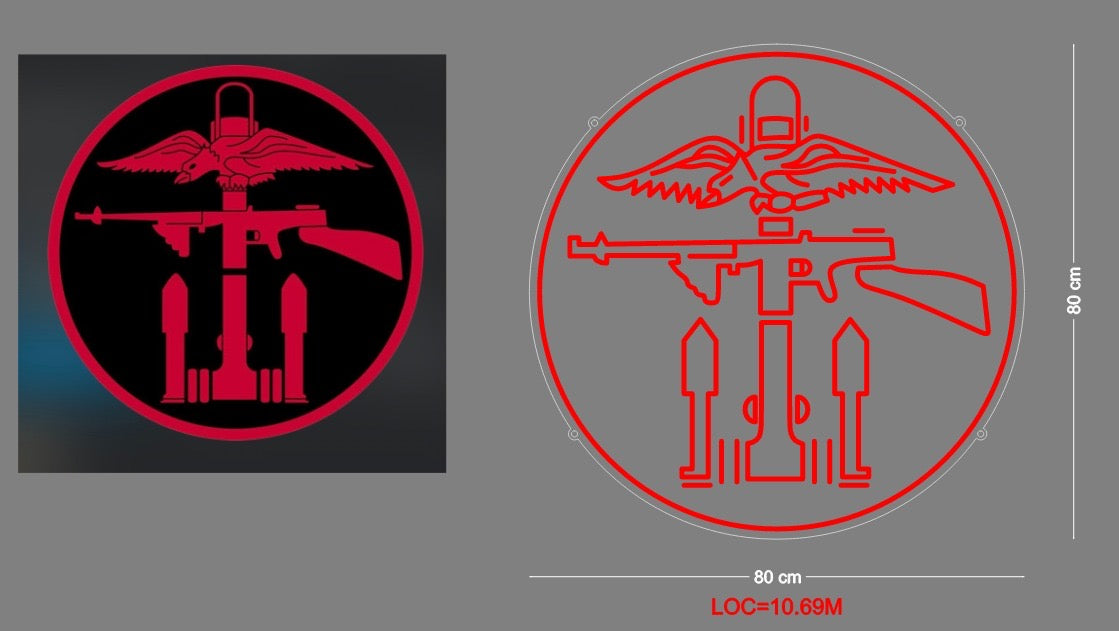 Size: 80cm x 80cm LED Colour: Red, golden yellow, cool white Backboard Shape: Cut to shape Backboard Colour: Clear acrylic