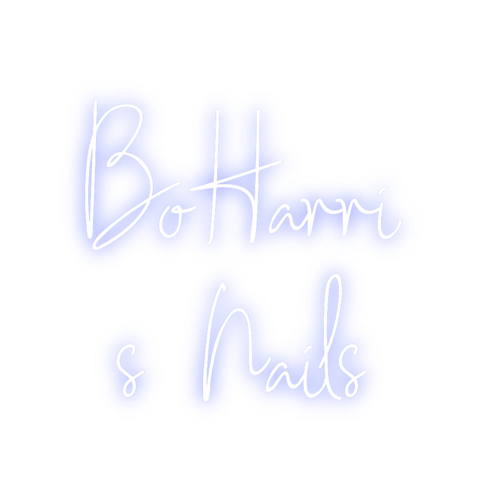 Text: BoHarri s Nails Text Align: center Font: SouthamptonColour: BlueSize: 40cm wide / 40cm X 39.53cm / 15.75in X 15.56inBackboard: Cut to ShapeBackboard Colour: Clear Acrylic BackboardJacket: Coloured JacketMounting: Wall mounting screwsAdd a Heart or Star (Optional): None...