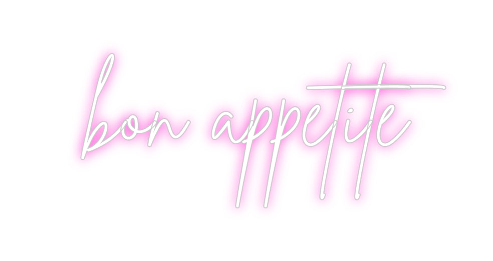 Text: bon appetite Text Align: center Font: BrittanyColour: PinkSize: 80cm wide / 80cm X 37.52cm / 31.5in X 14.77inBackboard: Cut to Letter (free upgrade)Jacket: Coloured JacketMounting: Wall mounting screwsAdd a Heart or Star (Optional): None (Default)Neon Tube Thickness: Clas...