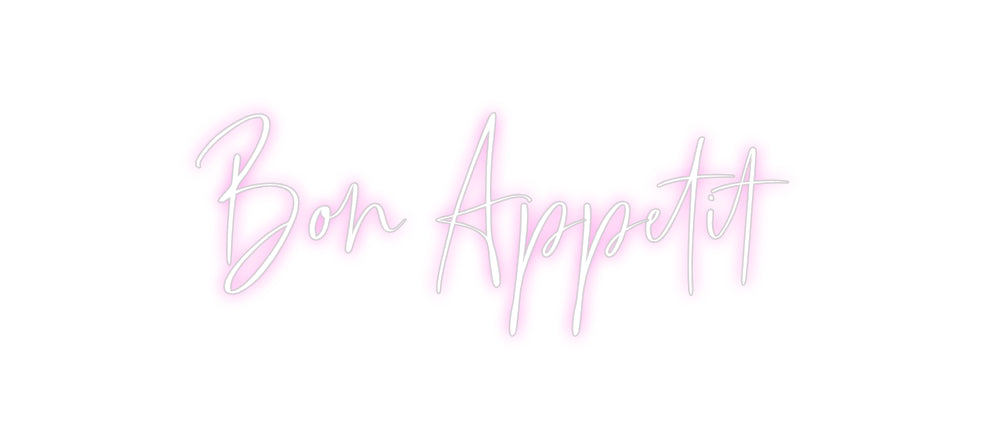 Text: Bon Appetit Text Align: leftFont: BayshoreColour: Warm WhiteSize: 80cm wide / 80cm X 18.24cm / 31.5in X 7.18inBackboard: Cut to Letter (free upgrade)Jacket: White JacketMounting: Fast mount kitAdd a Heart or Star (Optional): None (Default)Neon Tube Thickness: Classic Tube (6mm)...