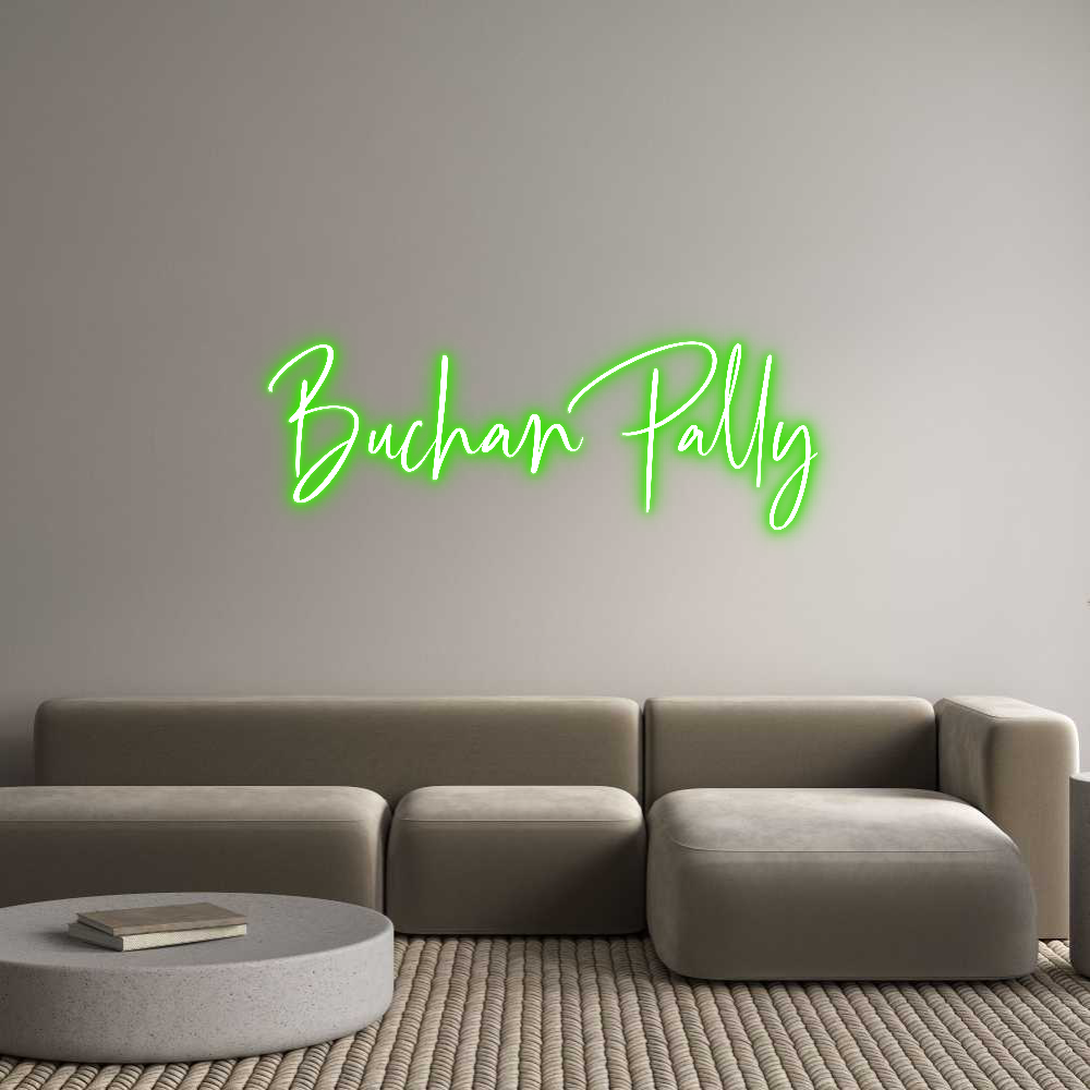 Text: Buchan Pally Text Align: LeftFont: OttawaColor: GreenSize: 80cm wide / 80cm X 27.66cm / 31.5in X 10.89inBackboard: Cut to ShapeBackboard Color: Clear Acrylic BackboardJacket: Coloured JacketMounting: Fast mount kitAdd a Heart or Star (Optional): None (Default)Neon Tube Thicknes...