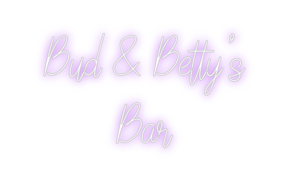 Text: Bud & Betty's Bar Text Align: center Font: PoiretColour: PurpleSize: 100cm wide / 100cm X 39.04cm / 39.37in X 15.37inBackboard: Cut to Letter (free upgrade)Jacket: Coloured JacketMounting: Wall mounting screwsAdd a Heart or Star (Optional): None (Default)Neon Tube Thi...