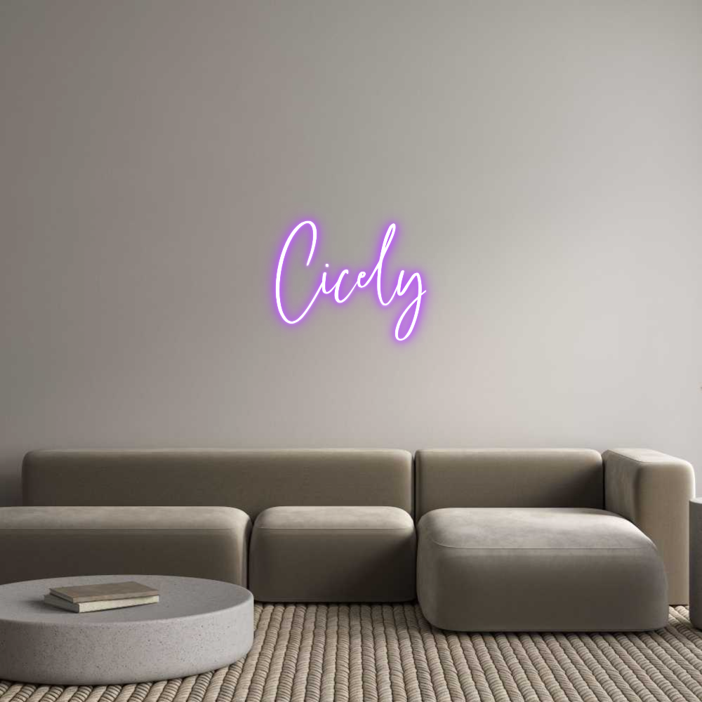 Text: Cicely Text Align: LeftFont: RocketColor: PurpleSize: 60cm wide / 60cm X 23.66cm / 23.62in X 9.32inBackboard: Cut to ShapeBackboard Color: Clear Acrylic BackboardJacket: White JacketMounting: Wall mounting screwsAdd a Heart or Star (Optional): None (Default)Neon Tube Thickness:...