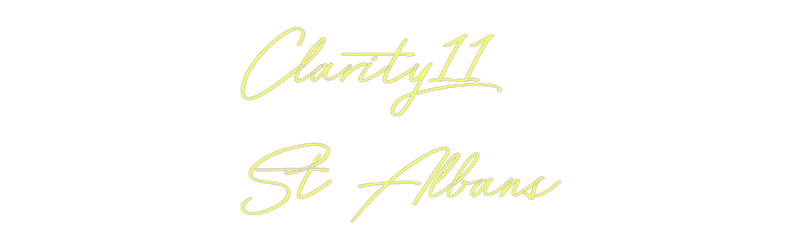 Text: Clarity11 St Albans Text Align: leftFont: BayshoreColour: YellowSize: 60cm wide / 60cm X 38.01cm / 23.62in X 14.96inBackboard: Cut to Letter (free upgrade)Jacket: Coloured JacketMounting: HangingAdd a Heart or Star (Optional): None (Default)Neon Tube Thickness: Bold Tube (8mm)...