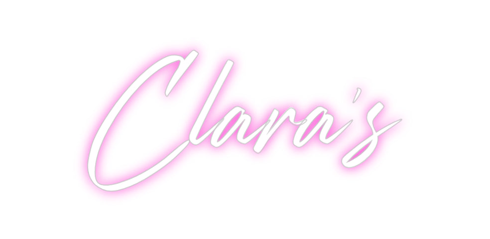 Text: Clara's Text Align: left Font: StrudeColour: PinkSize: 100cm wide / 100cm X 42.88cm / 39.37in X 16.88inBackboard: Cut to ShapeBackboard Colour: Clear Acrylic BackboardJacket: Coloured JacketMounting: Wall mounting screwsAdd a Heart or Star (Optional): None (Default)Neon T...