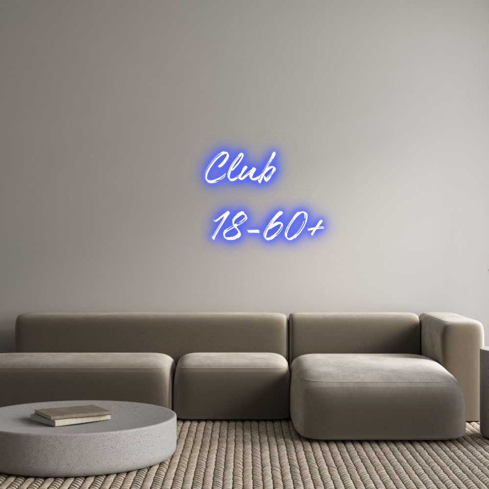 Text: Club 18-60+ Text Align: CenterFont: WorldColor: BlueSize: 80cm wide / 80cm X 46.17cm / 31.5in X 18.18inBackboard: Cut to Letter (free upgrade)Jacket: Coloured JacketMounting: Wall mounting screwsAdd a Heart or Star (Optional): None (Default)Neon Tube Thickness: Classic T...