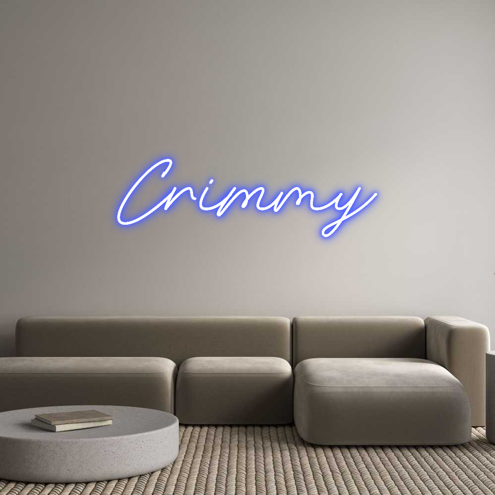 Text: Crimmy Text Align: LeftFont: RocketColor: BlueSize: 60cm wide / 60cm X 18.76cm / 23.62in X 7.38inBackboard: Cut to ShapeBackboard Color: Clear Acrylic BackboardJacket: Coloured JacketMounting: Fast mount kitAdd a Heart or Star (Optional): None (Default)Neon Tube Thickness: Bold...