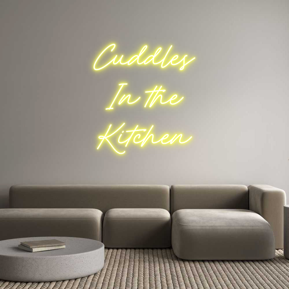 Text: Cuddles In the Kitchen Text Align: center Font: RocketColour: YellowSize: 80cm wide / 80cm X 82.15cm / 31.5in X 32.34inBackboard: Cut to Letter (free upgrade)Jacket: Coloured JacketMounting: Wall mounting screwsAdd a Heart or Star (Optional): None (Default)Neon Tube Thi...