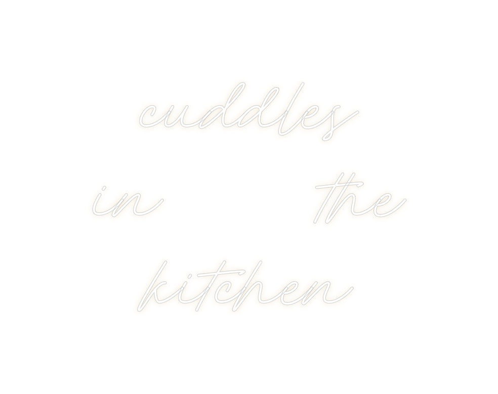 Text: cuddles in the kitchen Text Align: center Font: RocketColour: Warm WhiteSize: 60cm wide / 60cm X 61.57cm / 23.62in X 24.24inBackboard: Cut to Letter (free upgrade)Jacket: Coloured JacketMounting: Wall mounting screwsAdd a Heart or Star (Optional): None (Default)Neon T...
