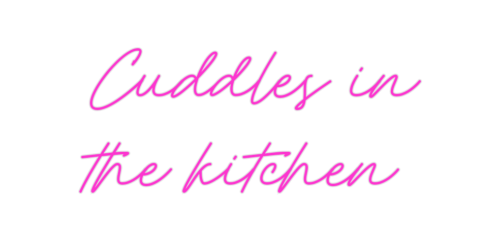 Text: Cuddles in the kitchen Text Align: left Font: Rocket Colour: PinkSize: 60cm wide / 60cm X 25.07cm / 23.62in X 9.87inBackboard: Cut to ShapeBackboard Colour: Clear Acrylic BackboardJacket: Coloured JacketMounting: Wall mounting screwsNeon Tube Thickness: Classic Tube...