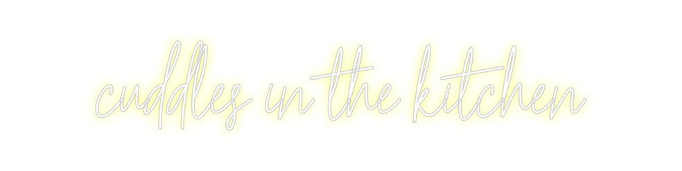Text: Cuddles in the kitchen Text Align: leftFont: RocketColour: Light OrangeSize: 120cm wide / 120cm X 11.85cm / 47.24in X 4.67inBackboard: Cut to Letter (free upgrade)Jacket: White JacketMounting: HangingAdd a Heart or Star (Optional): HeartNeon Tube Thickness: Classic Tube (6mm)Re...