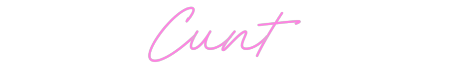 Text: Cunt Text Align: leftFont: RocketColour: Baby PinkSize: 40cm wide / 40cm X 14.27cm / 15.75in X 5.62inBackboard: Cut to Letter (free upgrade)Jacket: Coloured JacketMounting: Wall mounting screwsAdd a Heart or Star (Optional): None (Default)Neon Tube Thickness: Classic Tube (6mm)...