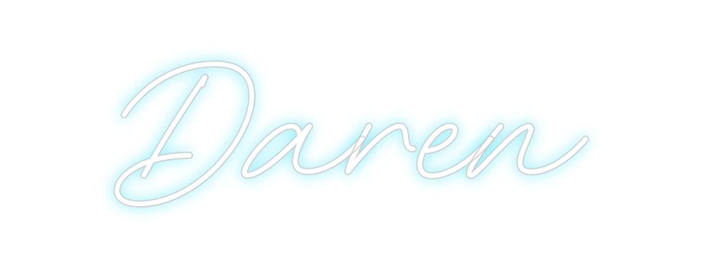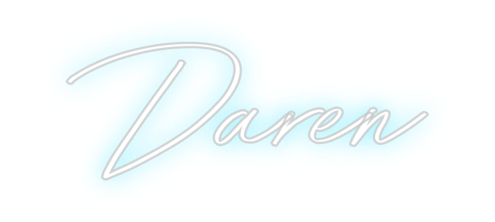 Text: Daren Text Align: left Font: BayshoreColour: Ice BlueSize: 40cm wide / 40cm X 15.5cm / 15.75in X 6.1inBackboard: Cut to Letter (free upgrade)Jacket: White JacketMounting: HangingAdd a Heart or Star (Optional): None (Default)Neon Tube Thickness: Bold Tube (8mm) (free upgra...