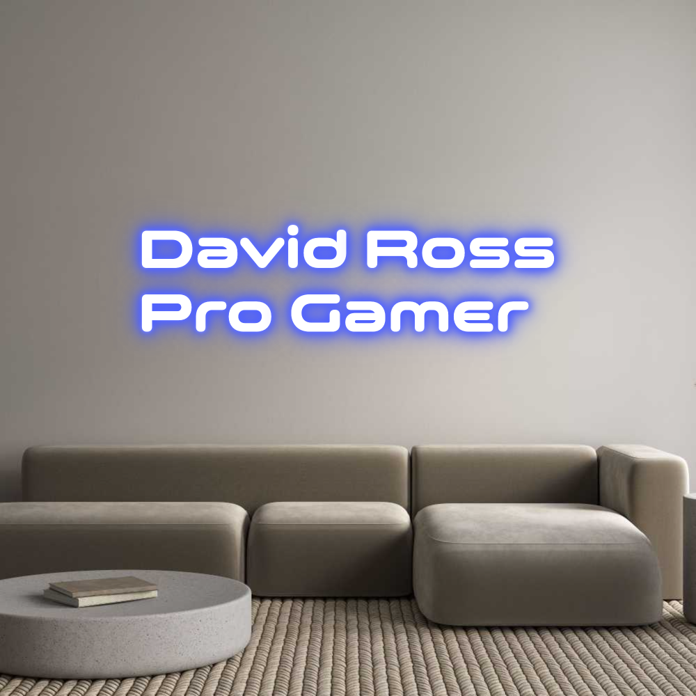 Text: David Ross Pro Gamer Text Align: LeftFont: SpaceColor: BlueSize: 60cm wide / 60cm X 13.84cm / 23.62in X 5.45inBackboard: Cut to ShapeBackboard Color: BlackJacket: Coloured JacketMounting: Wall mounting screwsAdd a Heart or Star (Optional): None (Default)Neon Tube Thickness: Cl...