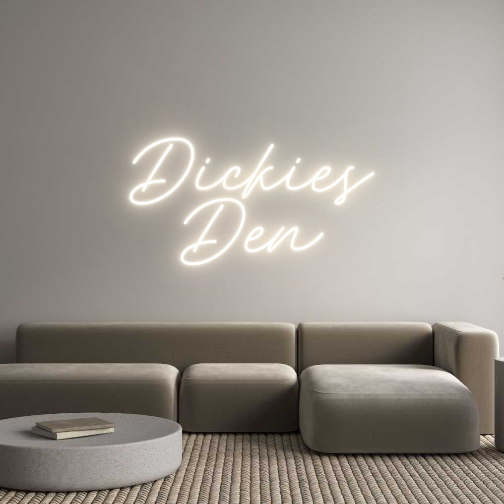 Text: Dickies Den Text Align: centerFont: RocketColour: Warm WhiteSize: 60cm wide / 60cm X 39.9cm / 23.62in X 15.71inBackboard: Whole Board (free upgrade)Backboard Colour: Clear Acrylic BackboardJacket: Coloured JacketMounting: Wall mounting screwsAdd a Heart or Star (Optional): Non...